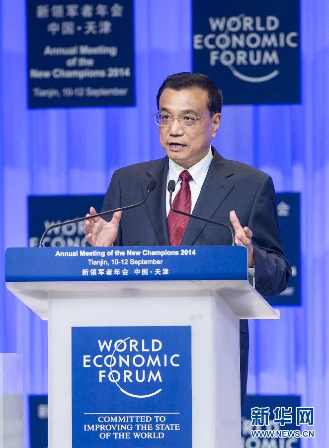 9月10日,国务院总理李克强在天津梅江会展中心出席第八届夏季达沃斯论坛开幕式,并发表特别致辞。 新华社记者王晔摄