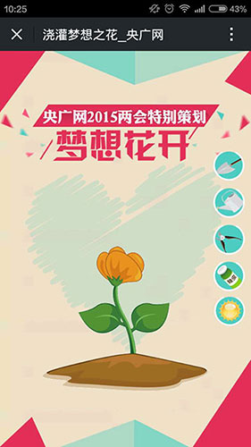 央广网移动端交互产品《浇灌梦想之花》系列小游戏页面截图