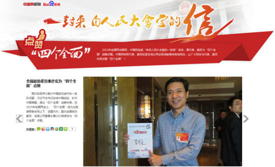 中国网《点赞“四个全面”》专栏网页截图