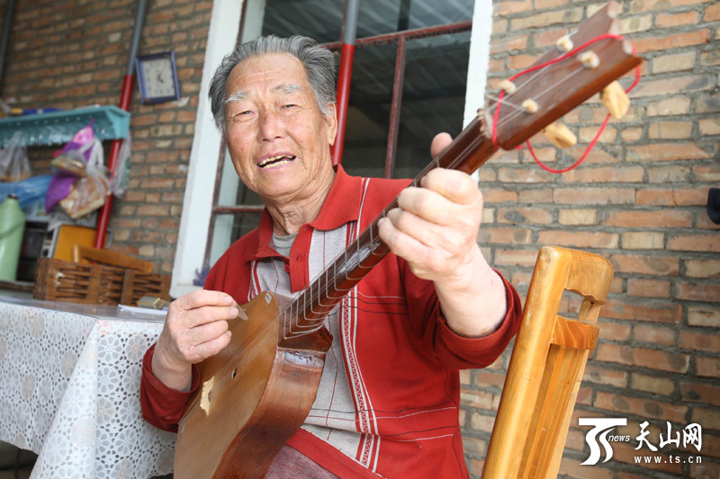 老人拿起一把外形有点像吉他的乐器,走出房门,坐在院子里自弹自唱起来。这是达斡尔族传统乐器“确库尔布日”。弦乐伴着歌声,苍凉慷慨之感油然而生,像是在向人们诉说250多年来,新疆达斡尔族的历史和荣光。