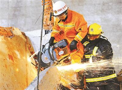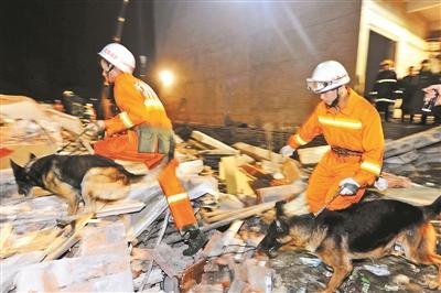 消防官兵在坍塌房屋现场搜救被埋人员供图/新华社