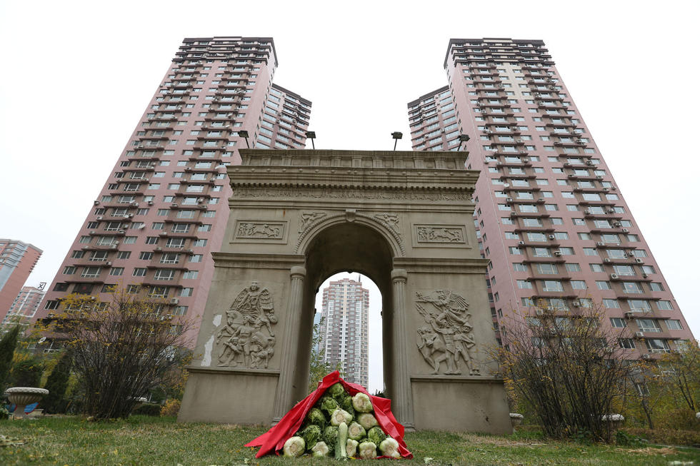 沈阳一小区山寨地标云集 凯旋门旁晒满大白菜(组图)