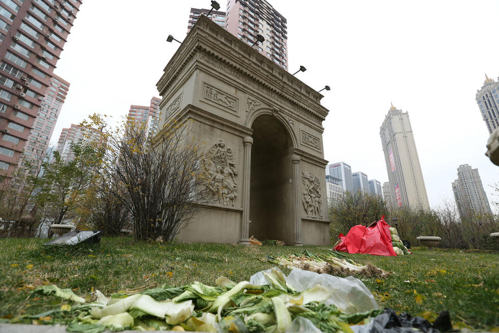 沈阳一小区山寨地标云集 凯旋门旁晒满大白菜(组图)