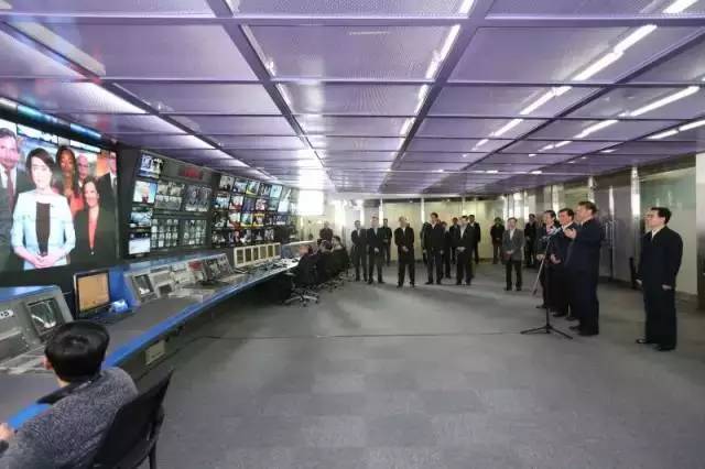 在总控中心,他同位于华盛顿市中心的北美分台视频连线,了解了分台建设运行情况。之后,习近平来到中央电视台《新闻联播》演播室、导播间,同编播团队互动交流。