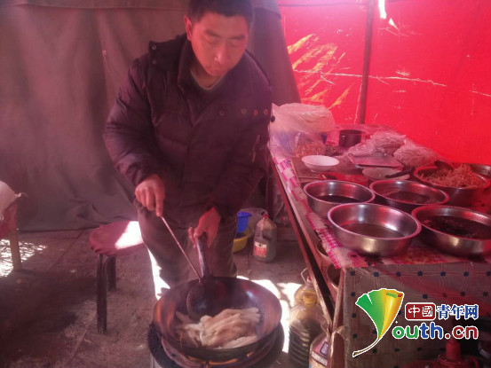 正在爆炒“平遥碗秃”的本地人。 中国青年网记者 吕玮摄