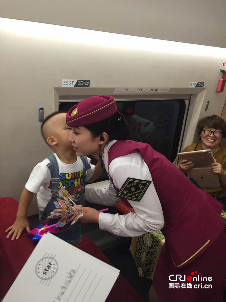 小朋友用亲吻列车长表示感谢