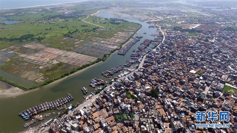 无人机航拍的陆丰甲子港(6月2日摄)。其独特地理位置经常被毒贩利用进行毒品运输交易。今年2月,警方在广东陆丰市甲子港一艘渔船上缴获2吨成品冰毒,至今已抓获28名涉案人员,其一次缴获毒品数量在我国十分罕见。这2吨冰毒从何而来?准备运往何处?海上“防毒墙”如何构建?“6·26”国际禁毒日来临前,新华社记者重返案发现场,独家采访了相关办案人员。新华社记者 梁旭 摄