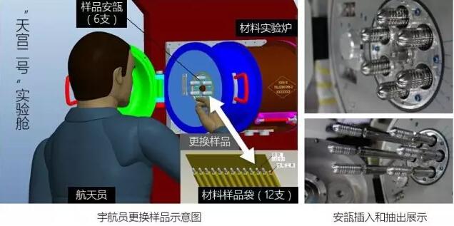 综合材料制备实验: 天宫二号任务综合材料实验项目的目标是在一期工程基础上,进一步提高综合材料实验装置的研制能力,实现有航天员在轨参与的空间材料科学实验,提升我国材料科学的空间实验能力。综合材料制备实验选用多种新型结构与类型的材料实验样品,如新型纳米复合光学材料、高性能热电转换材料、多元复相合金等,航天员将多次操作更换并回收实验样品供地面进一步分析研究。科研人员设计了一个特殊的炉子,可以在同一个炉子里,“炼制”各种需要不同合成条件的材料。
