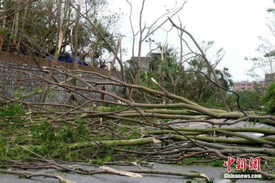 登陆点大量行道树被风吹倒。 王东明 摄
