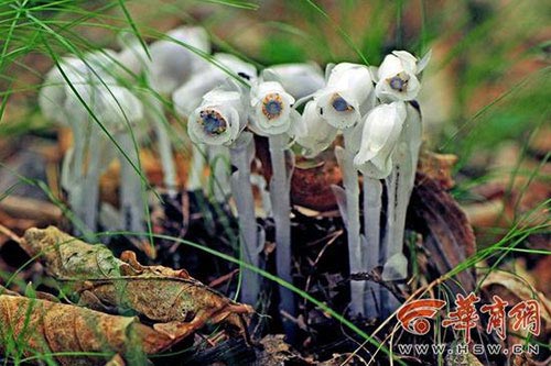 水晶兰极易凋谢,它柔软细滑的花瓣稍微一碰,就会掉落。如果忍不住采一株,它很快就会变黑枯萎。即使仅仅碰伤它,它的伤口也会渗出露珠一般的凝胶液体,很快又变得乌黑。这大概是它得名“死亡之花”的由来吧。