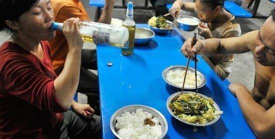 图为杨亚珊和丈夫一起吃饭,夫妻两一天在吃饭上的花销要超过 50 元。