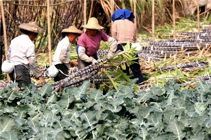 女农民工每扛一次甘蔗10元钱 一趟100斤甘蔗