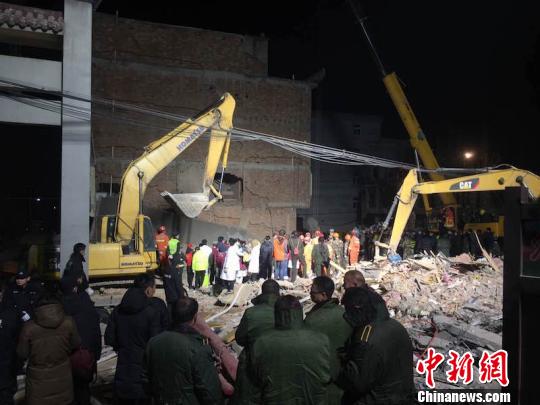 夜色渐浓,寒意更深,陈刘川和项永岳还在等待。现场救援应急照明灯将废墟周围照得明亮,一支由消防、武警、民兵、乡镇干部等构成的400余人的救援队伍依旧在紧张地挖掘救援中。