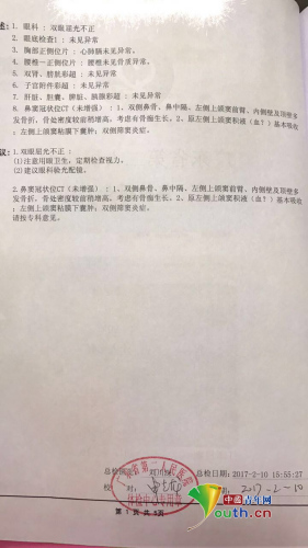 由于身体不适,琳哒此前曾经前往医院自行检查,在琳哒出示的一份广东省第二人民医院体检报告中显示,“双侧鼻骨、鼻中隔、左侧上颌窦前臂、内侧壁及顶壁多发骨折、骨处密度较前稍增高,考虑有骨痂生长;原左侧上颌窦积液基本吸收;左侧上颌窦粘膜下囊肿;双侧筛窦炎症。”