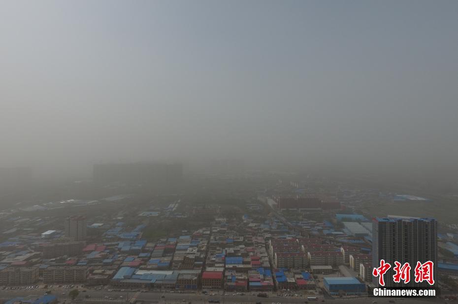 5月4日上午,山西太原被沙尘笼罩,能见度不高。 中新社记者 韦亮 摄