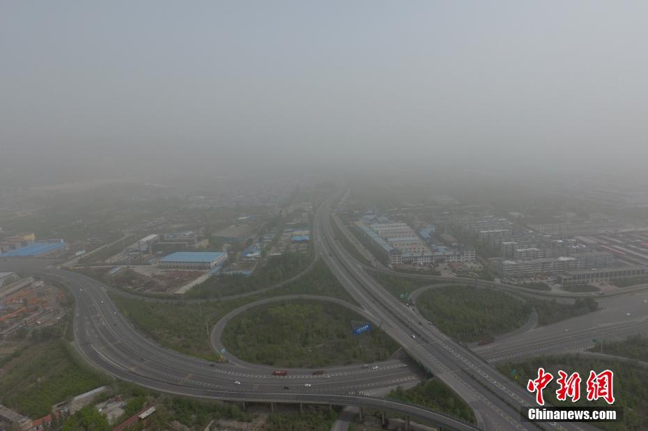 5月4日上午,山西太原被沙尘笼罩,能见度不高。 中新社记者 韦亮 摄
