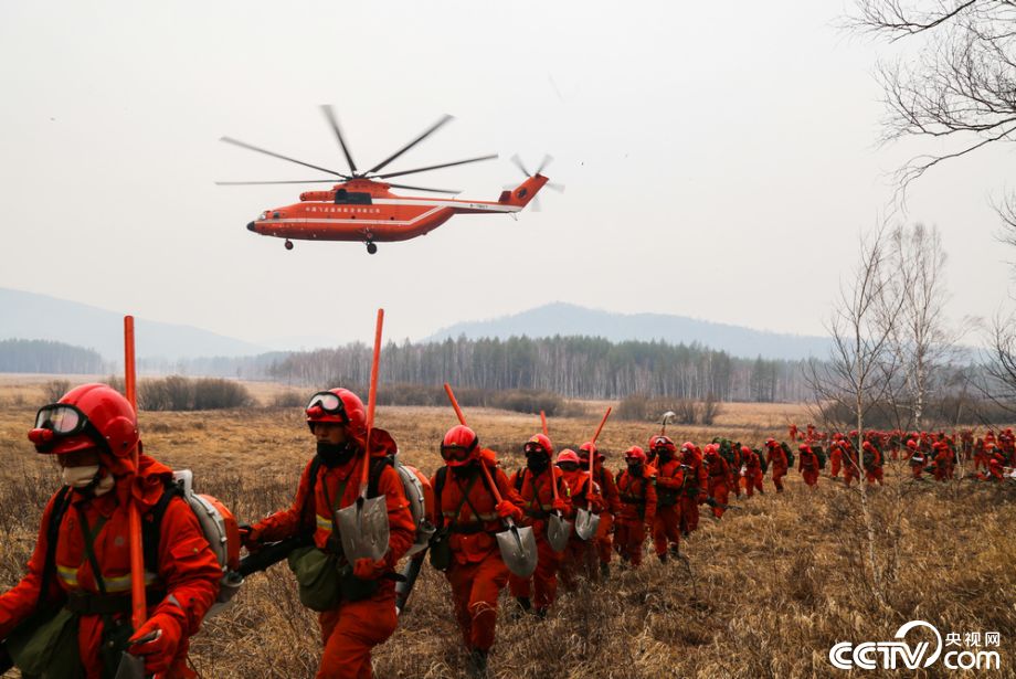 实施机降的官兵徒步向火场开进。(刘鹏志 摄)
