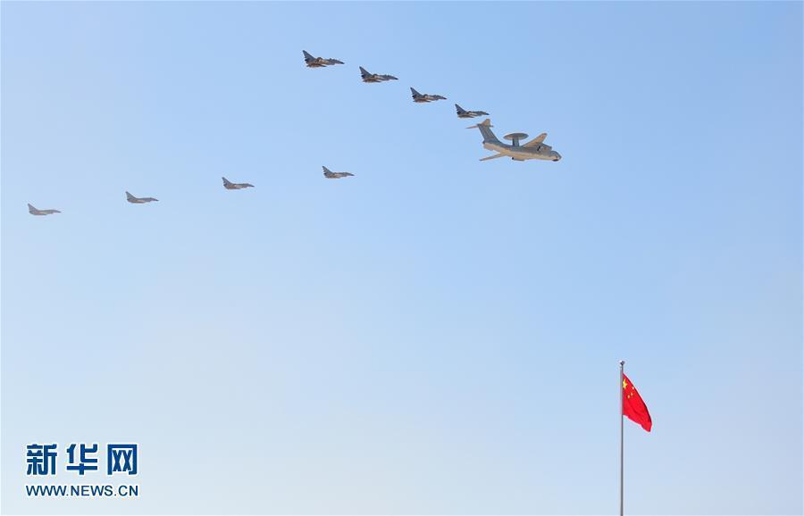 7月30日,庆祝中国人民解放军建军90周年阅兵在位于内蒙古的朱日和训练基地举行。中共中央总书记、国家主席、中央军委主席习近平检阅部队并发表重要讲话。这是预警指挥机梯队。新华社记者 邓华 摄 图片来源:新华网