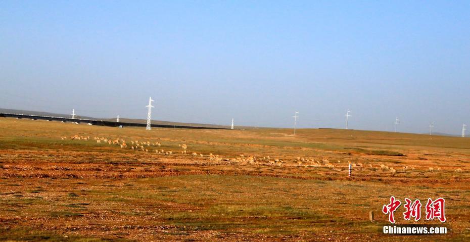 据可可西里管理局五道梁保护站统计,目前已有4000余只母藏羚羊带着出生不久的小羊羔顺利通过青藏公路,回到各自栖息地。图为藏羚羊通过青藏公路以后,往五北大桥方向迁徙。 孙睿 摄