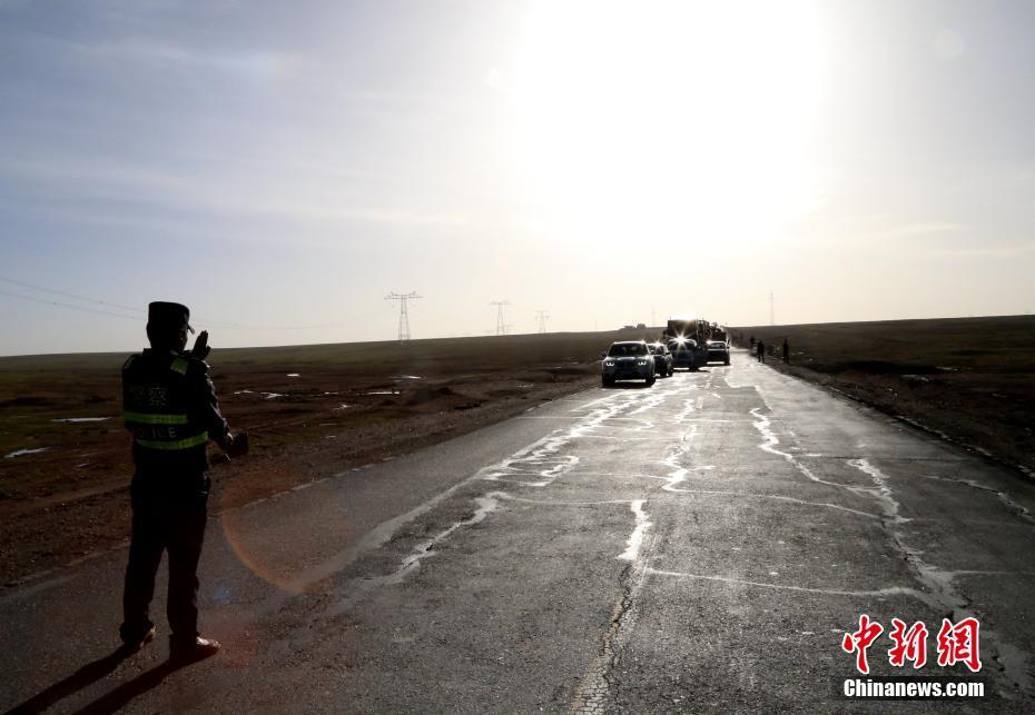 8月9日早8时许,可可西里管理局工作人员堵住青藏公路来往的车辆,保护约有300余只藏羚羊藏羚羊顺利通过青藏公路,开启它们的回迁之路。