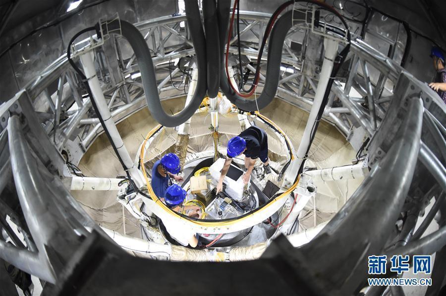 工作人员在FAST馈源舱内工作(8月10日摄)。 10月10日,中国科学院国家天文台宣布,被誉为“中国天眼”的500米口径球面射电望远镜(FAST)经过一年紧张调试,已实现指向、跟踪、漂移扫描等多种观测模式的顺利运行,并确认了多颗新发现脉冲星。这是我国天文望远镜首次发现脉冲星,距“天眼之父”南仁东病逝不到1个月。新华社记者 欧东衢 摄 图片来源:新华网