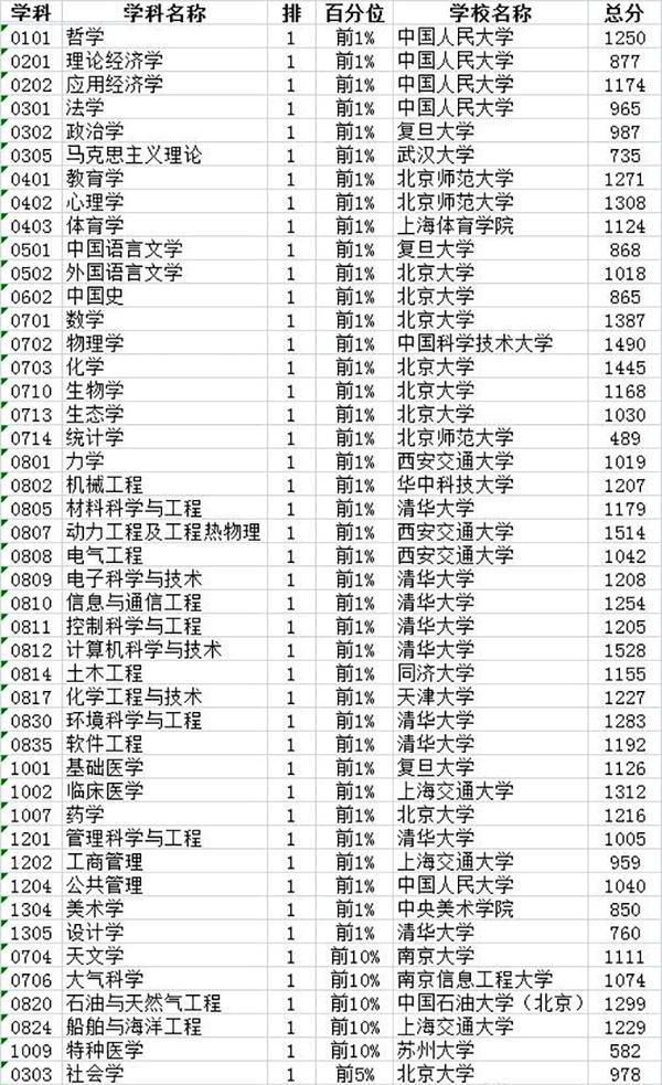 中国最好学科排名出炉:最优前1%学科分布在这18所高校