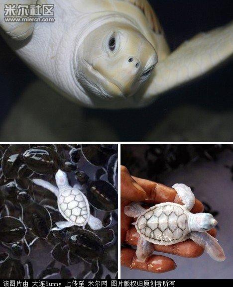 海龟寿命很长,但是海龟在年幼的时候死亡率很高。白化海龟身体表面显眼的白色使它更容易受到伤害。