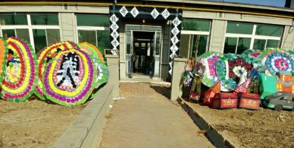 12月15日朱老师的家里,已经布置了灵堂,几十个花圈都摆在朱老师的家门口,很多落款是学生敬献。