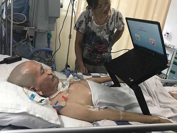 今年4月,唐贵安病危住进ICU,做了气切手术。儿子给他买了一个眼动仪,安装在电脑上,不能说话的唐贵安通过网络和家人、朋友交流。“老子又活过来了。”唐贵安在同学微信群里“大喊”。