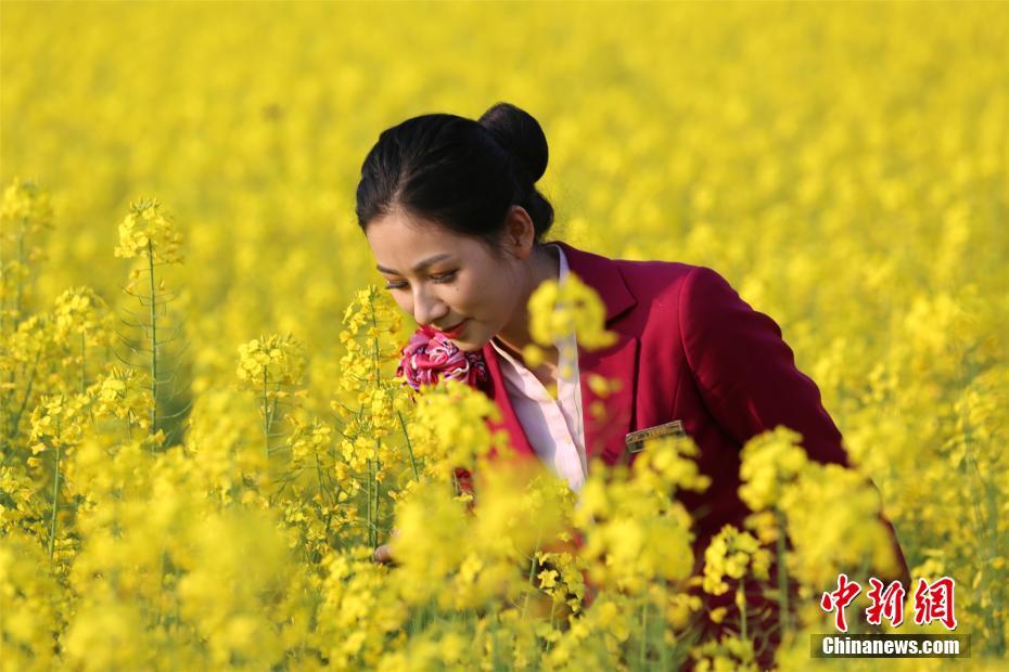 3月15日至16日,在被誉为“中国最美乡村”的江西婺源县,来自中国铁路南昌局集团的高姐们来到此间踏青赏花。此前,当地旅游部门对外发布花期预报,今年婺源油菜花的旺花期预计为3月中旬至清明节前后。盛开的油菜花吸引了大量游客前往观赏。为满足春游旅客赏花需求,中国铁路南昌局集团有限公司将于3月16日至4月9日期间,在南昌(九江)至婺源间加开“赏花专列”。丁波 摄