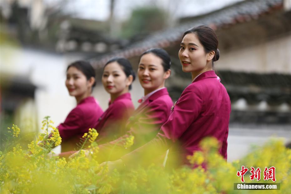 3月15日至16日,在被誉为“中国最美乡村”的江西婺源县,来自中国铁路南昌局集团的高姐们来到此间踏青赏花。此前,当地旅游部门对外发布花期预报,今年婺源油菜花的旺花期预计为3月中旬至清明节前后。盛开的油菜花吸引了大量游客前往观赏。为满足春游旅客赏花需求,中国铁路南昌局集团有限公司将于3月16日至4月9日期间,在南昌(九江)至婺源间加开“赏花专列”。丁波 摄
