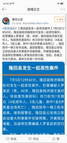记者注意到,湖南省邵阳市隆回公安局已经对此作出通报称,7月5日12时43分,隆回县桃洪镇南松村发生一起恶性案件,犯罪嫌疑人罗某武(男,40岁,隆回县桃洪镇文昌村人,有故意伤害前科)持刀砍伤7名群众(4名成年人、3名儿童,其中1名8岁男童当场死亡),随后抢夺一辆三轮车逃离。接到报警后,隆回县公安局立即启动重大刑事案件侦破预案,开展围追堵截,迅速将犯罪嫌疑人罗某武抓获归案。目前,伤者正在全力救治,案件正在进一步办理。