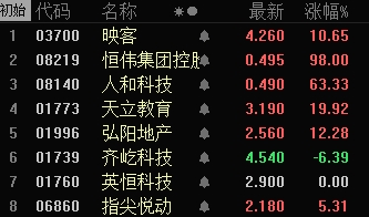 截至下午收盘,上市的映客、恒伟集团控股、人和科技、天立教育、弘阳地产、齐屹科技、英恒科技和指尖悦动分别上涨10.65%、98%、63.33%、19.92%、12.28%、-6.39%、0%和5.31%。