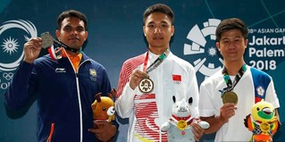 在男子10米气步枪决赛前两组比赛中,杨皓然枪法精准确立了领先优势,但进入淘汰轮后状态略有起伏,一度被中国台北选手紧咬。最后仅剩三人时,印度选手异军突起,超过中国台北选手与杨浩然对决!关键一枪,杨皓然打出10.9环,最终以破亚运会纪录的成绩最终夺冠!