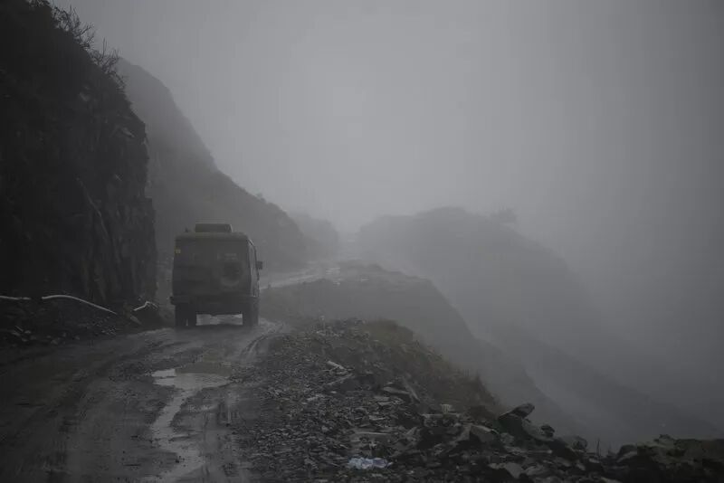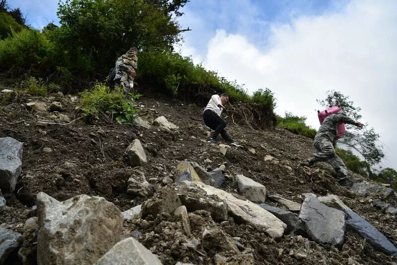 汽车在道路阻断处停了下来,吴海燕和小鹭洋下车徒步穿越塌方路段。次仁达娃扛起行李跟在后面,他安慰吴海燕说:“山的那一边,部队派来的汽车已经在等咱们了。”