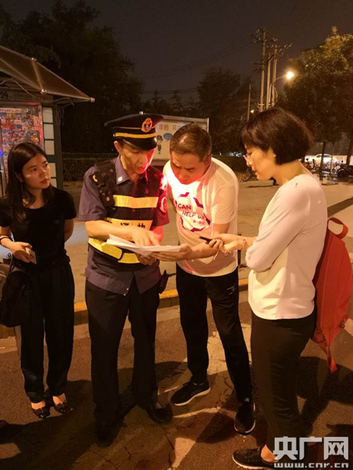 国务院大督查第一督查组组长辛国斌向执法队员了解相关情况。(央广网记者 刘天思 摄)