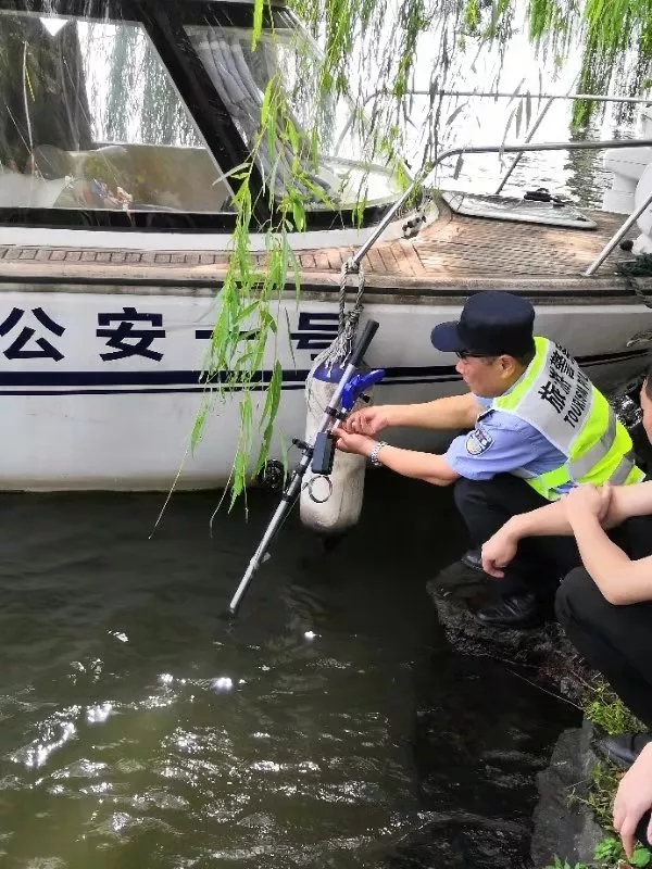 杭州景区公安分局水上派出所民警——“西湖捞哥”周翔军,戴着墨镜驾船赶到,手上提着他发明的第四代“打捞神器”,简单观察了一番“案发现场”,5分钟后,她的手机便打捞了上来,屏幕还亮着。“哈哈这手机质量可真不错,姑娘你赶紧拿去维修店烘干检查,问题应该不是很大!”老周说。