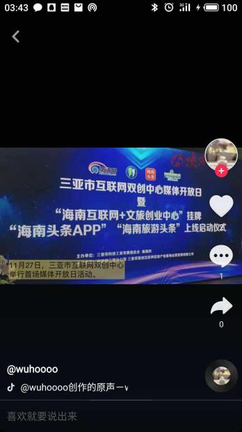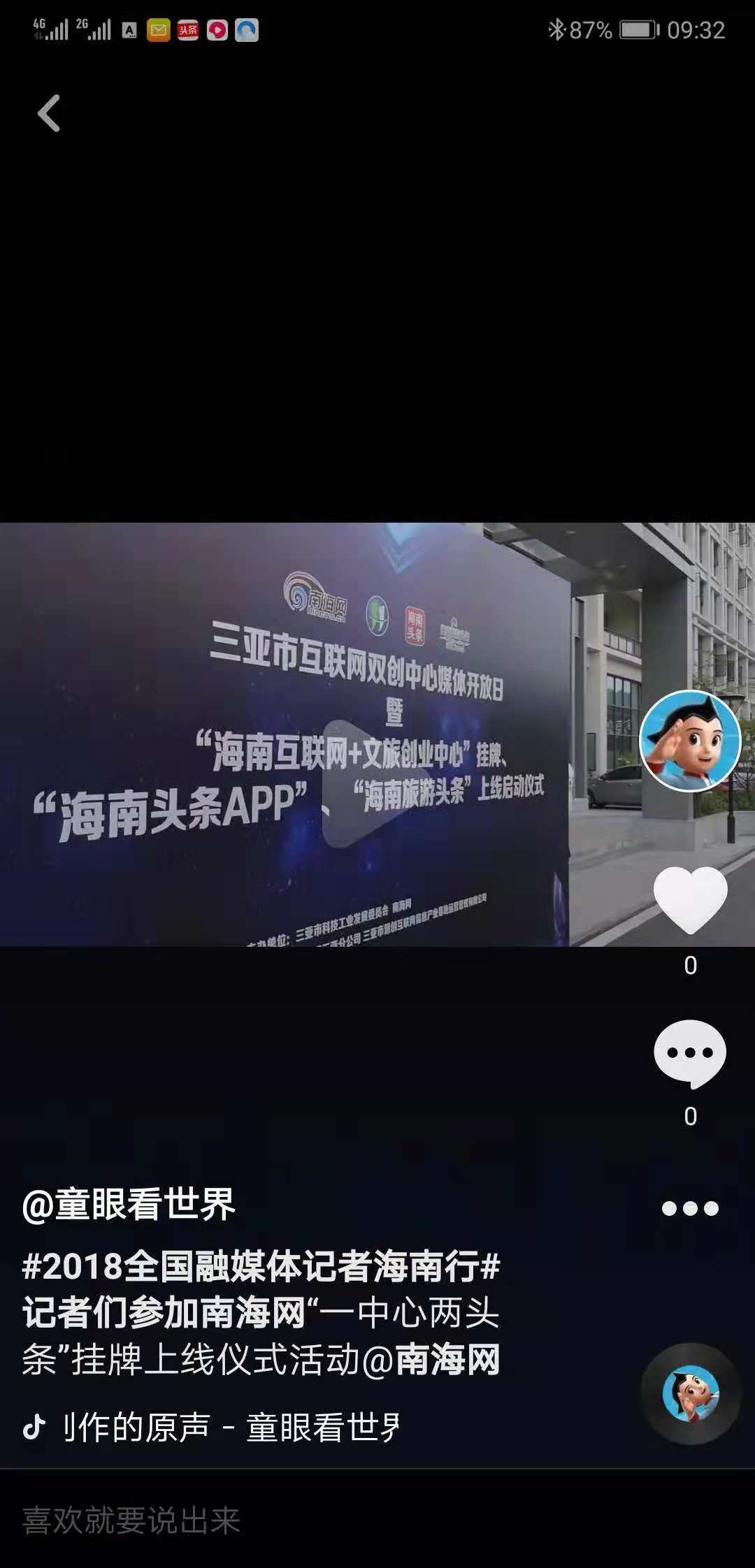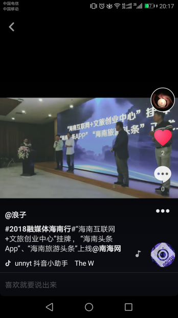 天山网抖音视频截图:#2018融媒体海南行#“海南互联网+文旅创业中心”挂牌,“海南头条app”、“海南旅游头条”上线
