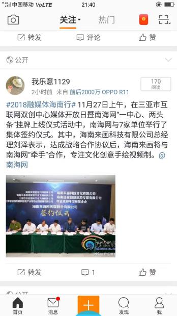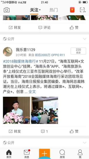 陕西传媒网官方微博:#2018融媒体海南行#11月27日,三亚市互联网双创中心媒体开放日暨“海南互联网+文旅创业中心”“海南头条APP”“海南旅游头条”挂牌上线仪式正式举行