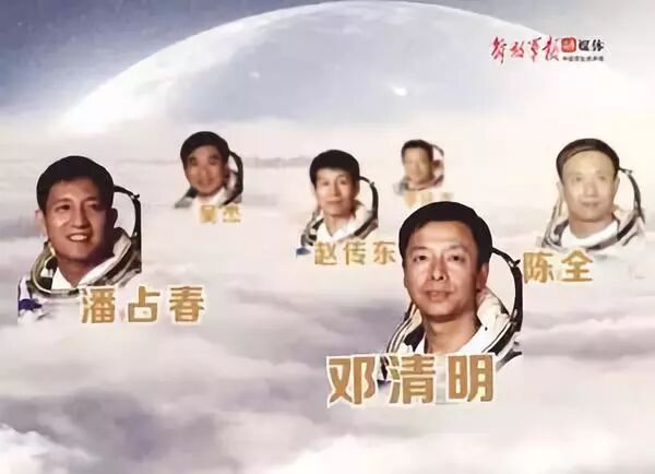 中国航天员大队首批14名航天员(前排左起邓清明、聂海胜、杨利伟、吴杰、费俊龙、赵传东、翟志刚,后排左起刘旺、景海鹏、刘伯明、李庆龙、陈全、张晓光、潘占春)