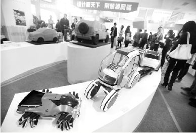 光博会汽车设计展区,外形奇特的汽车模型十分抢眼。本版图片 本报记者 孙辰 摄