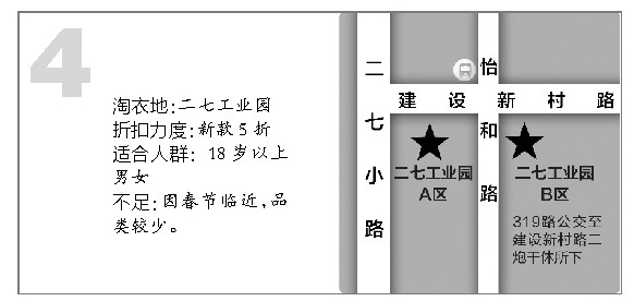 淘衣地:二七工业园折扣力度:新款5折适合人群:18岁以上男女不足:因春节临近,品类较少。