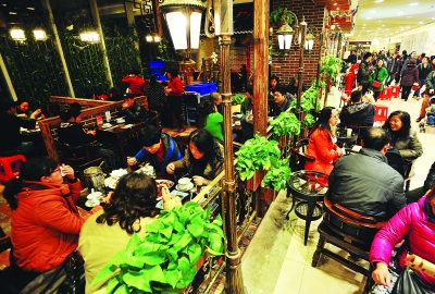 ▲武商众圆广场里的各种餐厅常常爆满。 记者詹松 摄