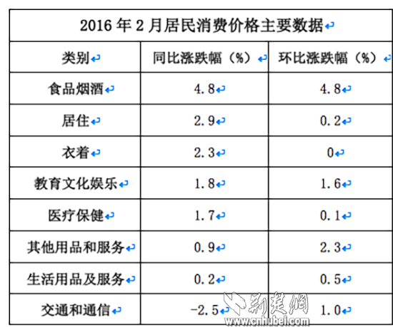 2月份居民消费价格主要数据