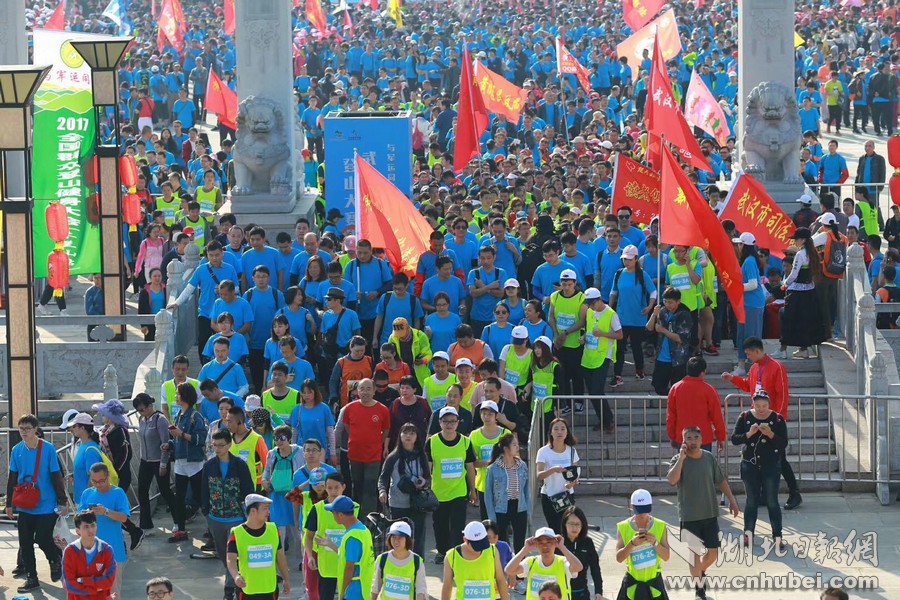 2017年全国群众登山健身大会(木兰山站)暨木兰山徒步达标赛吸引2000多名徒步爱好者,比赛线路全长5.5公里,徒步的队伍浩浩荡荡。