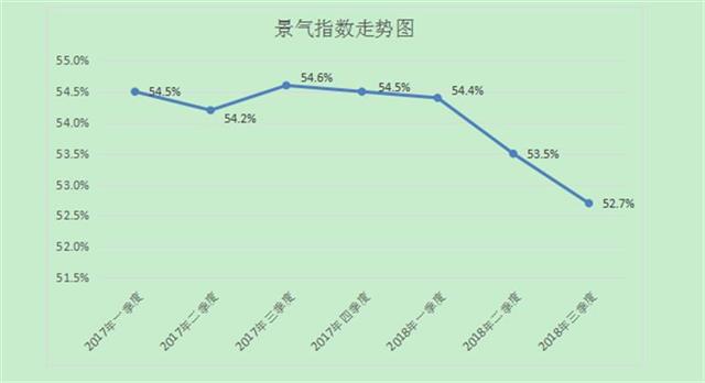 民营企业对政府支持的满意度不断提高,三季度该指数为65.1%,比上季度提高6.7个百分点,表明“放管服”改革持续推进和利好政策的深入实施,提振了民营信心,投资意愿继续提升,固定资产投资指数为58.6%,比上季度提高0.7个百分点。