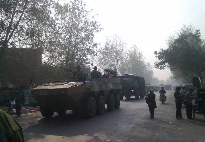 解放军突击炮新疆绚丽开火 战士冲过火圈