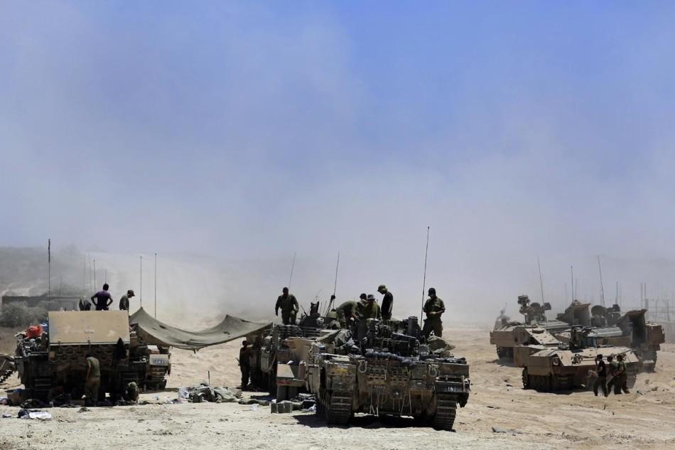 在加沙边境集结的以军装甲部队。