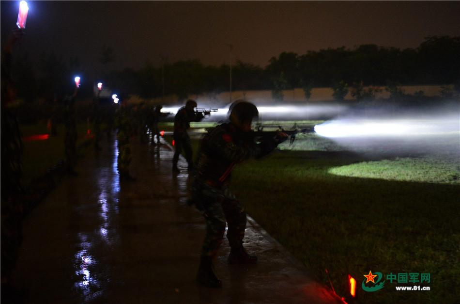 9月21日,在武警重庆总队八支队综合训练场,特战队员在进行夜间射击课目竞赛。
