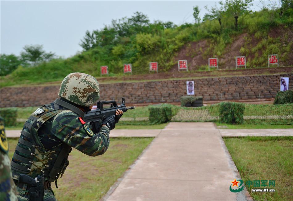 9月21日,在武警重庆总队八支队综合训练场,特战队员在进行快速识别射击课目竞赛。